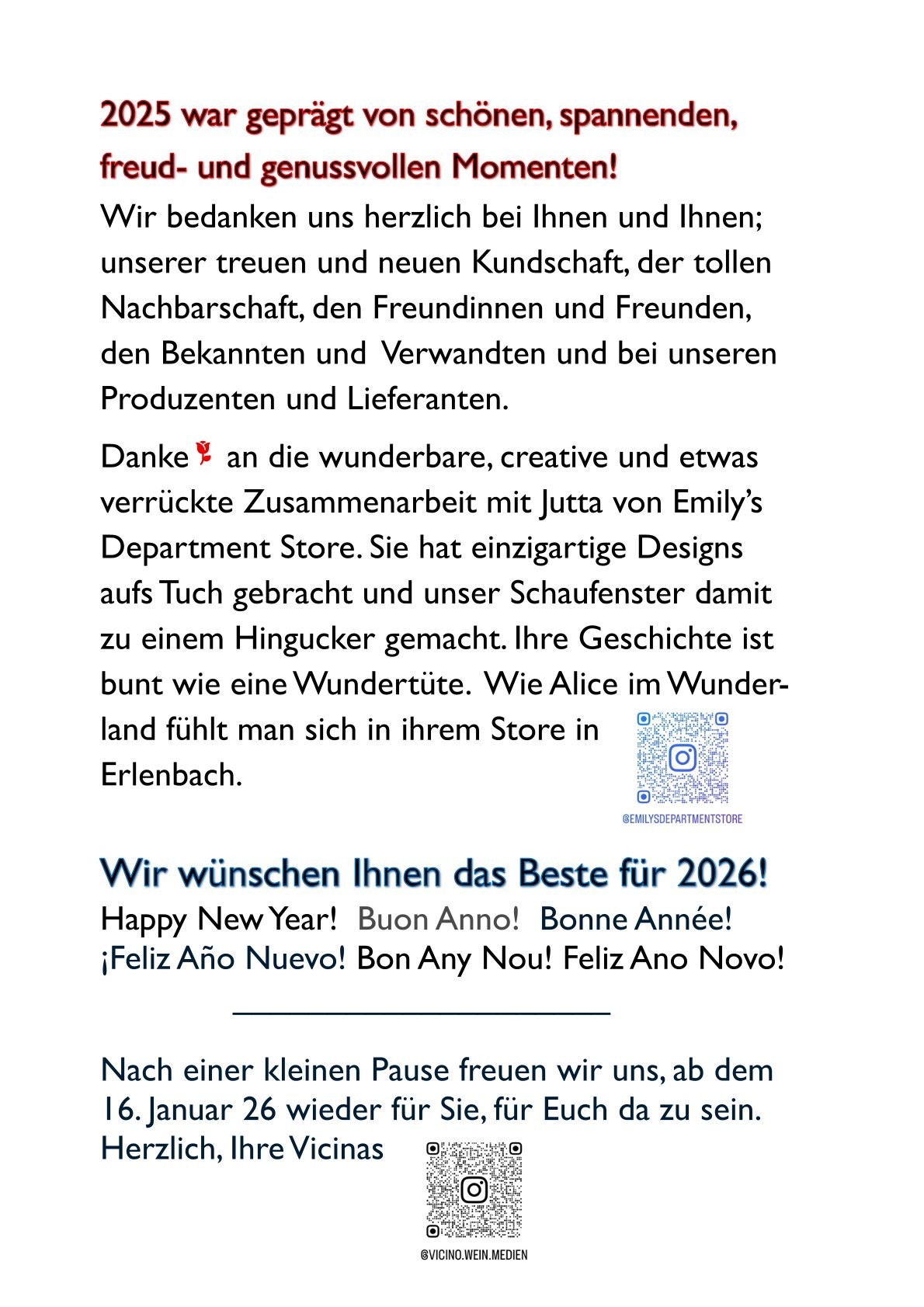 Nebst Wein und einer grossen Auswahl an Prosecco, Franciacorta und Cava finden Sie bei uns alkoholfreien Wein, speziellen mediterranen und Schweizer Gin, Gents Tonic, Grappa, Vermouth, Liqueur, Pasta, Salse und Dolci.