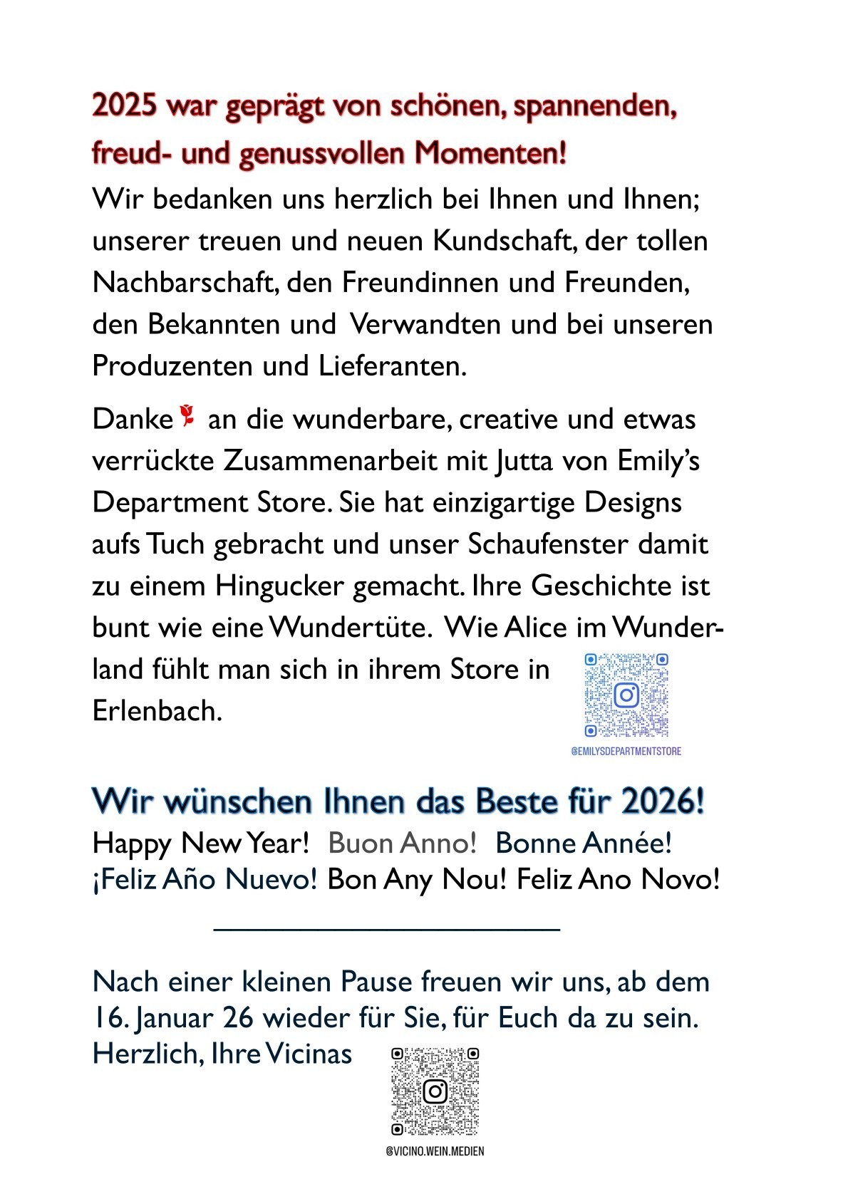 Wir danken allen die dabei waren und uns begleiten in unserer Vicino-Welt der Freude und des Genusses!